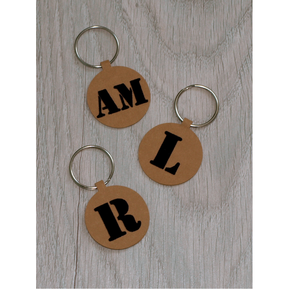 Standaard wordt deze sleutelhanger met zwarte tekst bedrukt. Liever een andere kleur?! Dat kan natuurlijk ook, je kunt dit aangeven bij 'eventuele opmerkingen' onder het kopje 'betaalmethode' in het bestelproces. Hier kun je ook invullen welke voorletter er op de hanger mag komen.