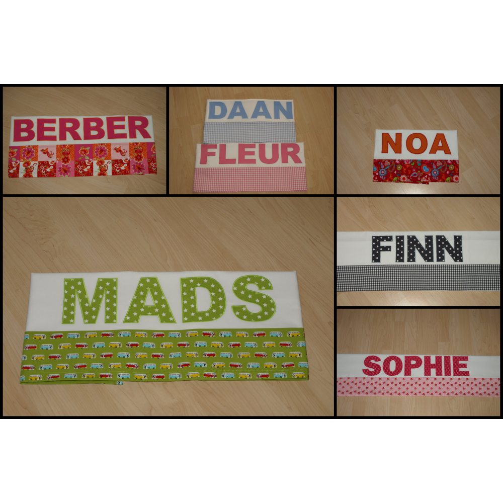 Op de foto zie je wat voorbeelden, jouw eigen lakentje kan natuurlijk helemaal naar wens worden ingevuld.