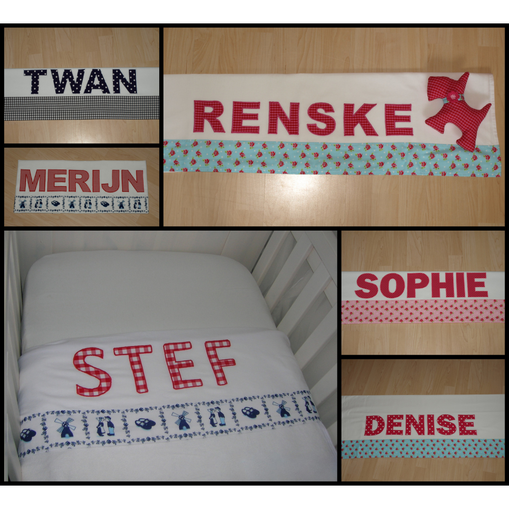 Op de foto zie je wat voorbeelden, jouw eigen lakentje kan natuurlijk helemaal naar wens worden ingevuld.