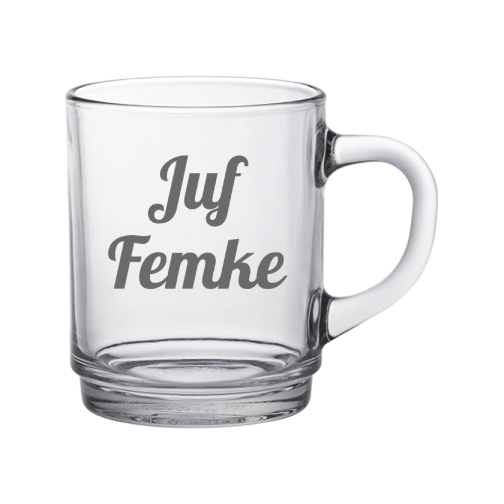 Natuurlijk aan te passen aan de ontvanger, we maken dit glas speciaal met de naam van jouw juf of meester!