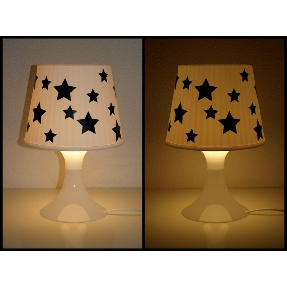 Dat is leuk, een lampje precies zoals jij 'm wilt hebben! Op de foto een lampje vol met sterren, maar er is van alles mogelijk: een naam, een leuk plaatje of neem het geboortekaartje als inspiratiebron.